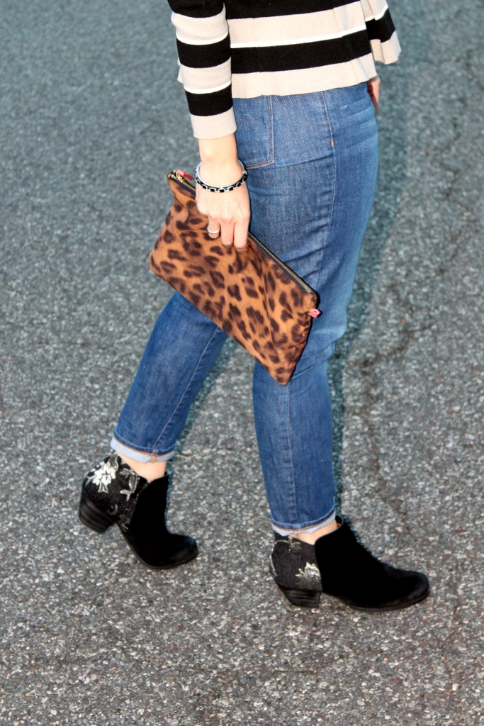 sweater- Banana Republic, jeans- J.Crew, booties- BC Footwear via Zappos, necklace- Lia Sophia, bracelet- Sequin via Nordstrom, bag- South Moon Under (similar), sunglasses- Ray-Ban