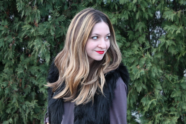 This is my first faux fur vest and I’m obsessed! It’s super soft (and warm) and instantly adds an element of cool to any look. It adds a layer of texture and instantly dresses up any look. I’ve already worn this to a couple of holiday parties and I plan on wearing it to a few more! Paired with a red lip and gold statement earrings, this vest makes a fun holiday outfit. I’m also loving these faux leather leggings (and they’re only $28!). I’ve been wanting a pair for at least over a year and when I found these ones, I was thrilled! They look great and fit really well (these two toned ones are also a great option for only $38!) and are a really nice alternative to wearing jeans!