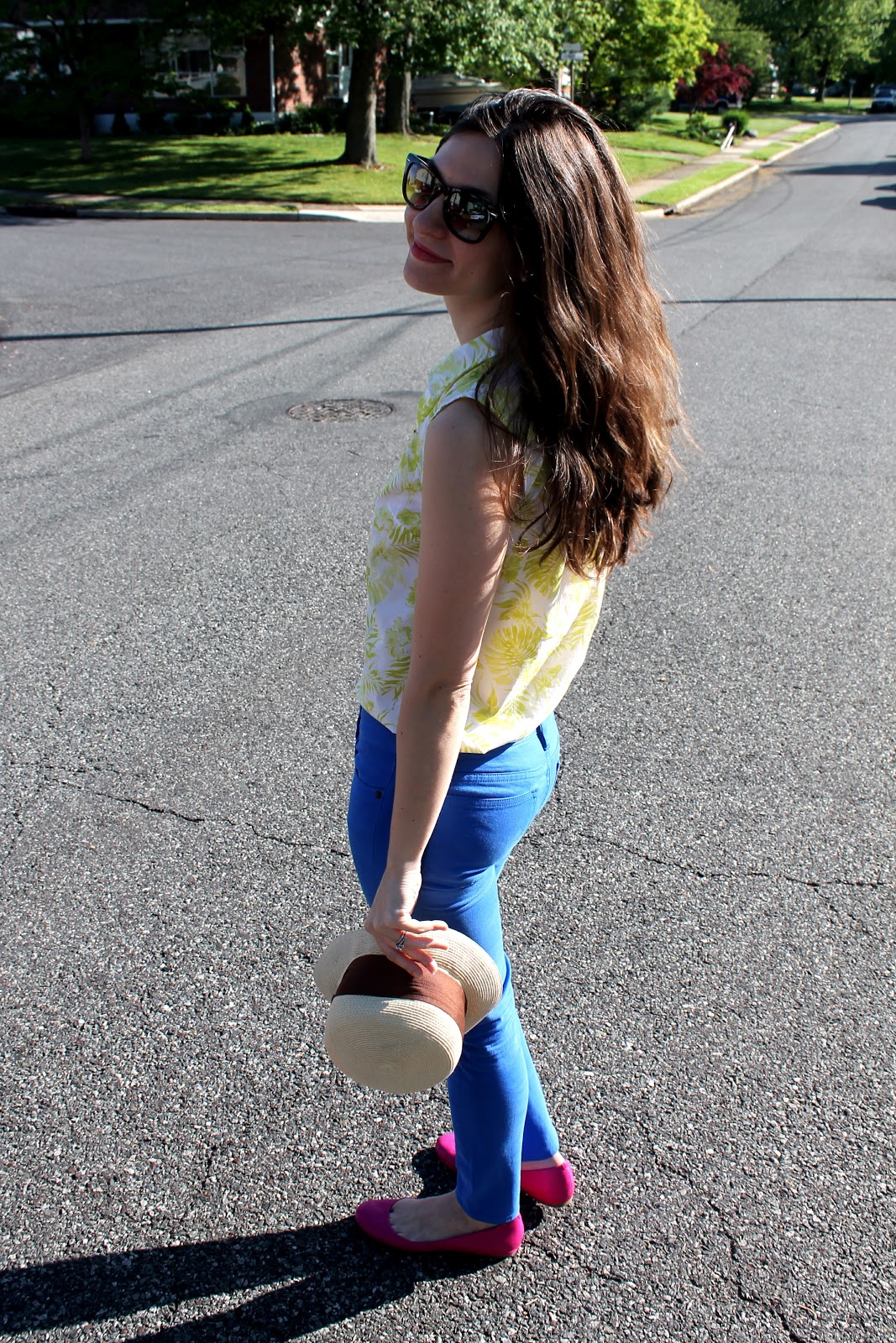 I just recently picked up this top from H&M for only $10! No, I’m not kidding. I’ve been looking for some palm print pieces for summer and I haven’t had a whole lot of luck so when I saw this, I just had to have it (and who could pass it up for the price?). I thought it would be fun to pair it with some equally bright and fun pieces since the palm print reminds me of vacation and days spent relaxing in the sun with a tropical drink 🙂 This outfit made me so happy wearing it with all the bright colors! What do you wear when you want a pick me up?