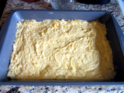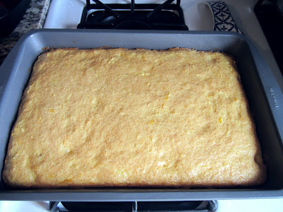 Preheat the oven to 325 degrees if using a dark or nonstick pan (just follow the directions on the cake box for this). Combine dry cake mix with pineapple first. Then add oranges and stir. Add the bananas last to avoid over mashing them.