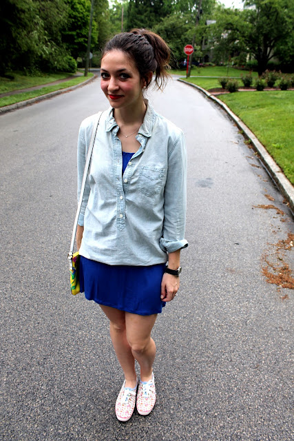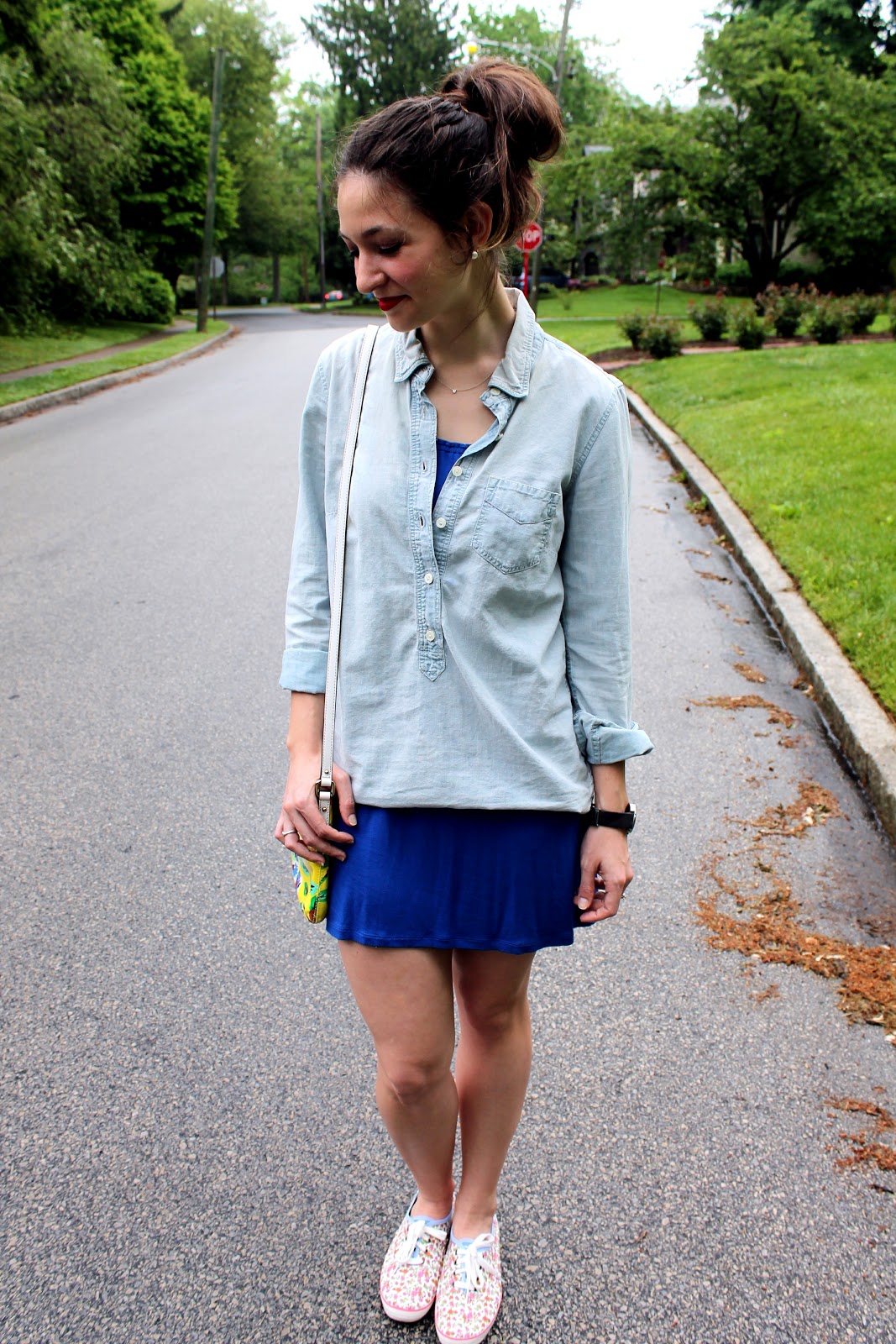 Here I go again with the cobalt! I told you I have a ton of it in my closet 🙂 And remember when I talked about how versatile this chambray popover is here? I wasn’t kidding! I wear this everywhere and with everything. It’s what I wear when I feel like I have nothing to wear. Ever have one of those days? I’m also loving these floral print Keds- so cute, right?! I’m wearing Joe’s watch in these photos 🙂 I thought I’d mix it up a bit by adding a more masculine piece since the sweet floral prints and otherwise dainty jewelry make the outfit so girly. What do you think?