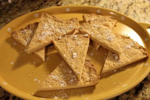 *The recipe notes that this is best when baked in a ceramic pan designed especially for shortbread but a small cake pan may be used instead. I actually used a ceramic pie pan and it worked just fine. Also note that if you use a glass pan, you maky have to adjust the temperature.