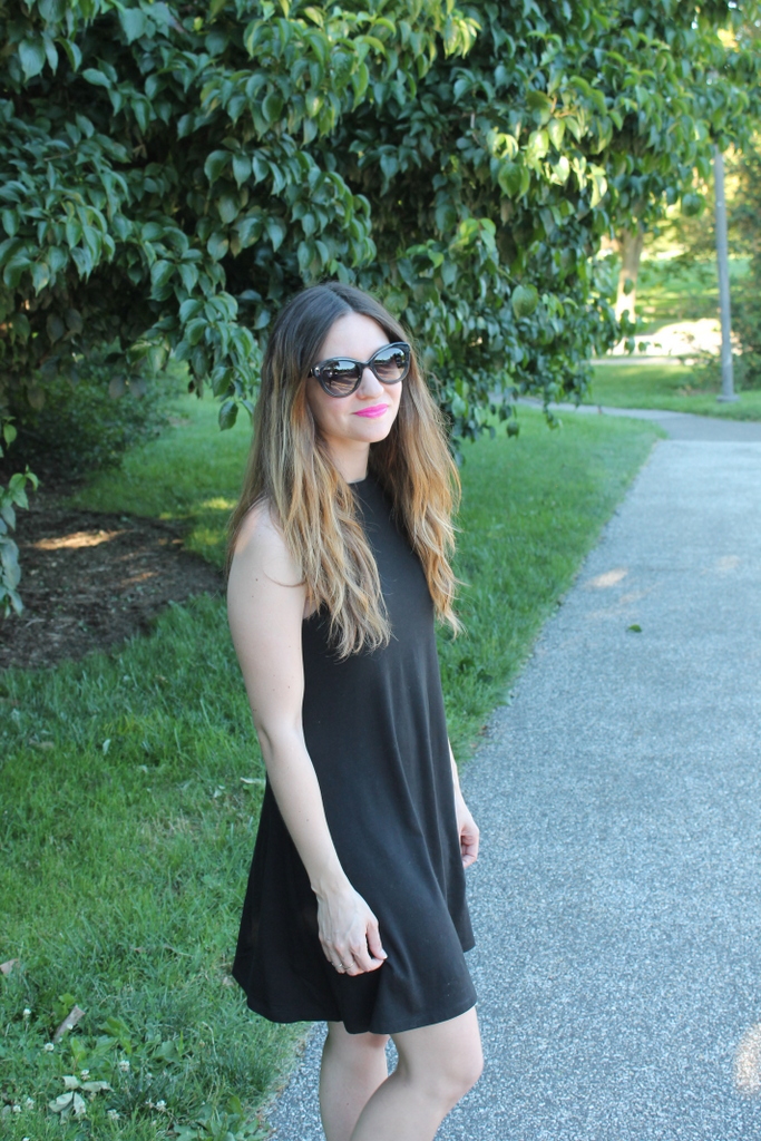 dress: Express, sandals: Just Fab (love these, too!), sunglasses: Kate Spade, lips: Butter London in Primrose Hill Picnic