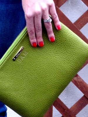And so we begin with a close up of my GiGi New York monogrammed clutch 🙂 Isn’t it pretty? Believe it or not, I actually did not plan this outfit around the bag. I planned it around the nailpolish (and it just so happened that the threading for the buttons on the shoulders of this top was lime green… pretty serendipitous if you ask me). It has been really rainy and gray here these past few days and I’m really looking forward to spring so I decided to go with a nautical look over the weekend and got crafty with my hair to hide the frizz… the weather just hasn’t been cooperating lately! I loved breaking out my Sperrys and this red, white, and navy striped top was the perfect complement… I also added a pair of turquoise shell earrings. Anyone else ready for the beach?